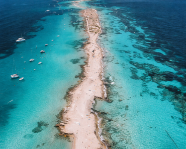 Una de las mayores ventajas de salir en barco es que puedes combinar calas conocidas con islotes y zonas más abiertas que tienen un carácter mucho más especial. Algunos están frente a la costa oeste y otros se encuentran en el entorno marino entre Ibiza y Formentera, donde el paisaje cambia por completo y el snorkel gana mucha sensación de aventura.