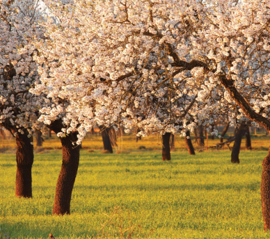 En Santa Agnès de Corona paramos y caminamos hasta el mirador. En invierno los almendros florecen; el resto del año, campos y pinares. Es un buen lugar para una pausa en un bar local.