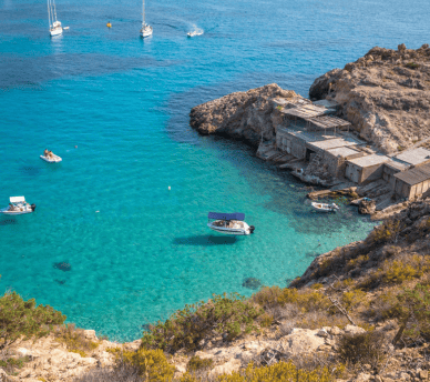 The zen moment of the day comes with a swim in the transparent sea, surrounded by greenery, gentle waves and very little noise. After this dose of calm, it’s time to return to San Antonio with the feeling of truly switching off in one of the quietest areas in northeast Ibiza.